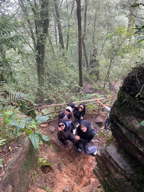 Pemandu memberikan arahan mengenai jalur yang mungkin sedikit licin karena kelembapan tinggi.